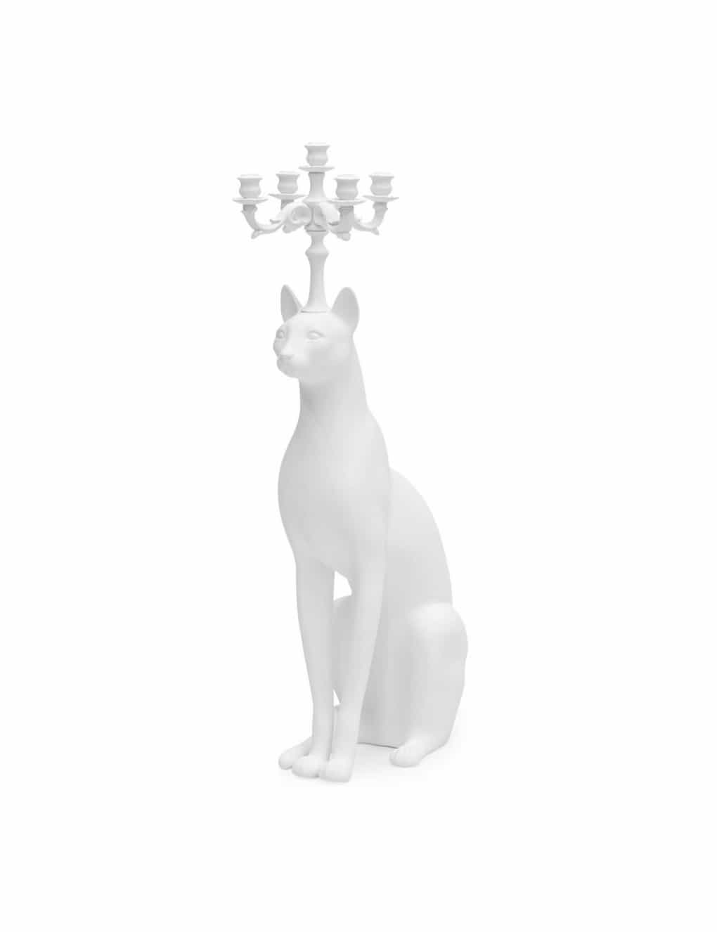 Abhika Candleholder Egyptian Cat White