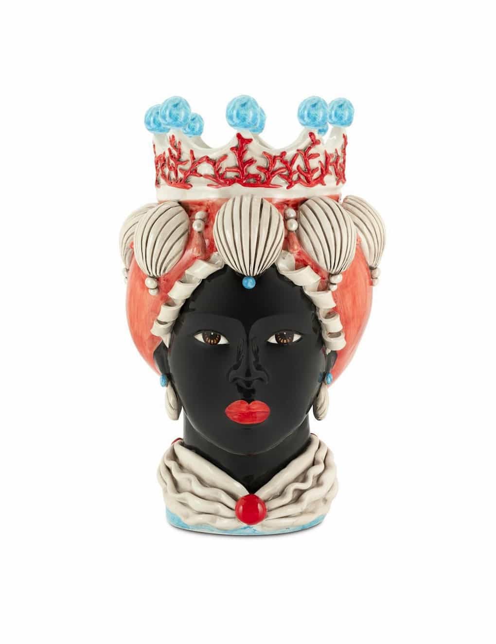 Abhika sicilian traditional moor-head shaped ceramic vase, totally hand made and hand painted by the original artisanal producer from Caltagirone – Sicily, restyled and exclusively distributed by Abhika.