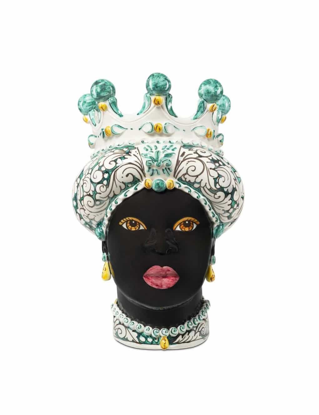 Sicilian traditional moor-head shaped ceramic vase, totally hand made and hand painted by the original artisanal producer from Caltagirone – Sicily, restyled and exclusively distributed by Abhika.