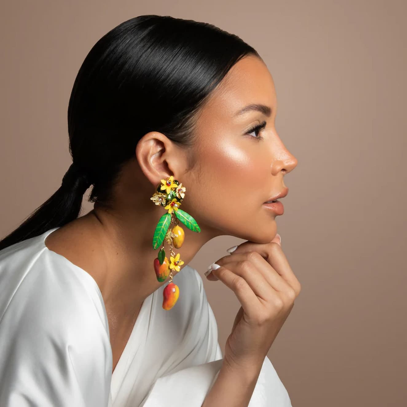 Aimer Gil the Caribbean is a collection inspired by my grandparents’ farm and my connection with the trips he made between Colombia and Venezuela where culture and customs become art. The jewels in this collection are handmade by Colombian and Venezuelan artisans; in each jewel we use recycled and cured plastic in our workshop to give shape to the different fruits and flowers presented here.