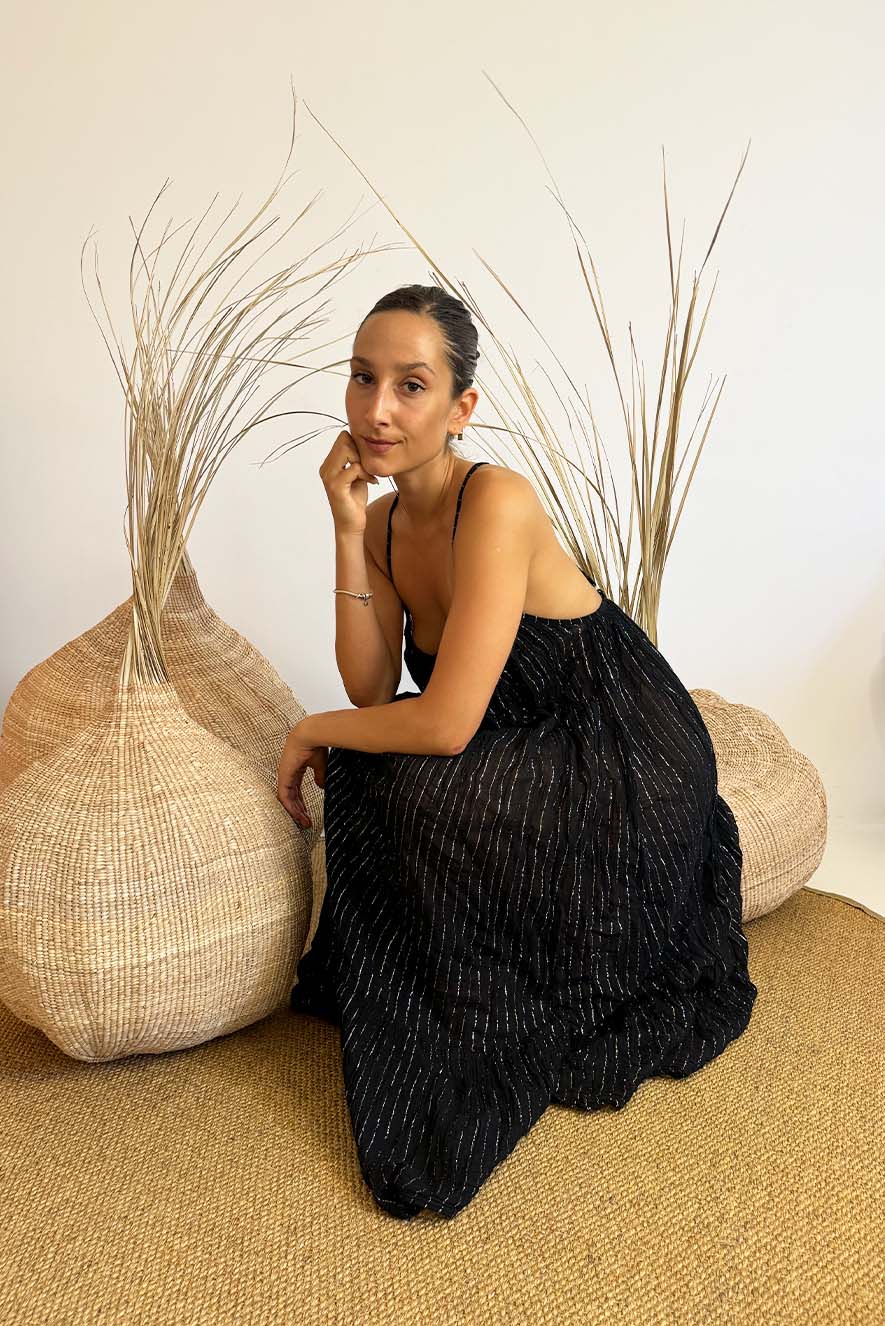 D’Artemide long dress Callisto with straps that cross at the back. Composition:100% GREEK ORGANIC COTTON. Made in Greece.