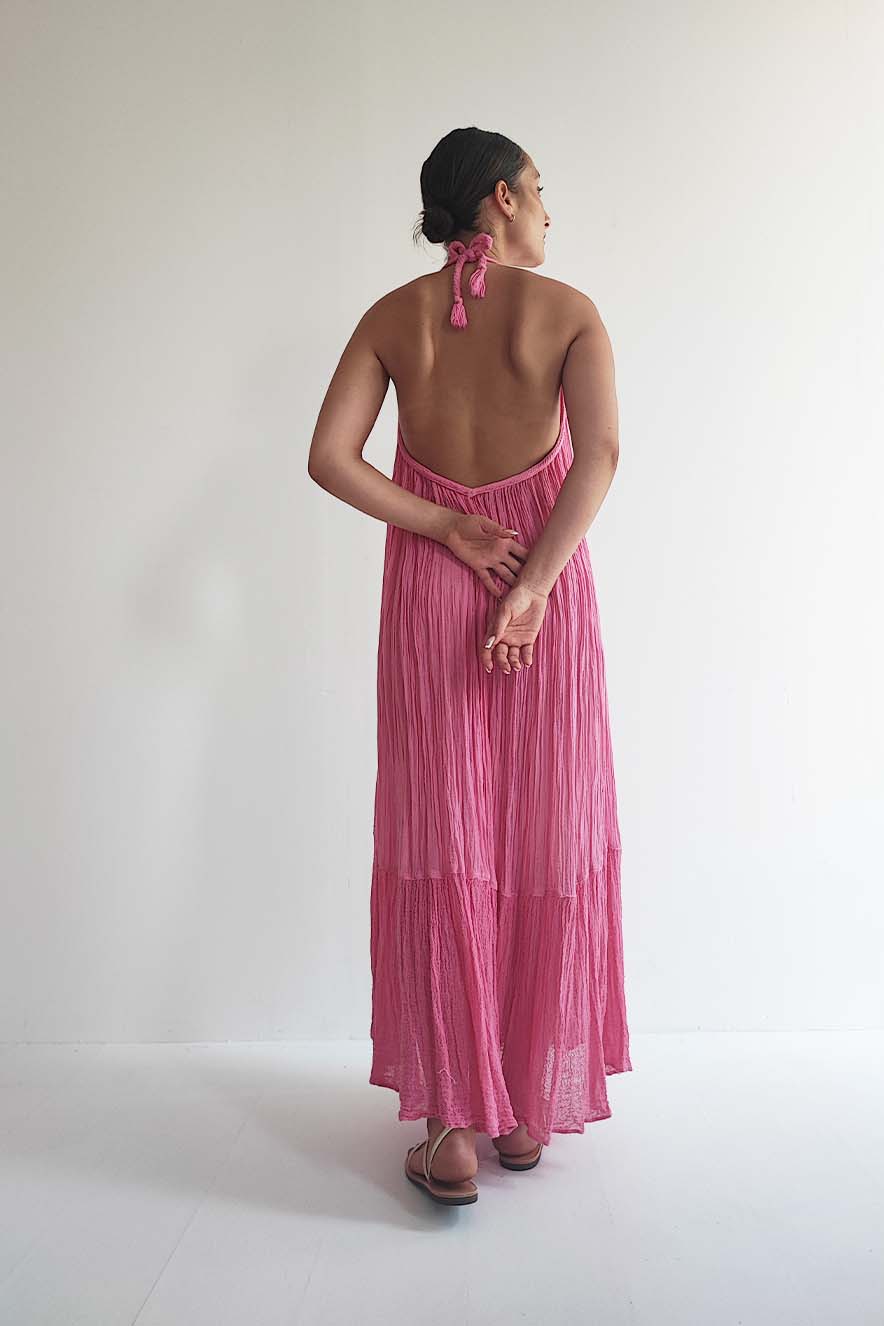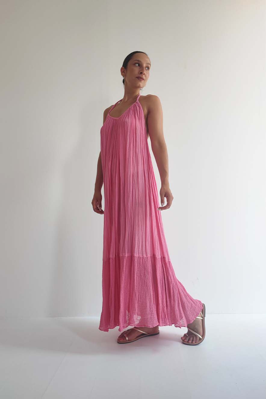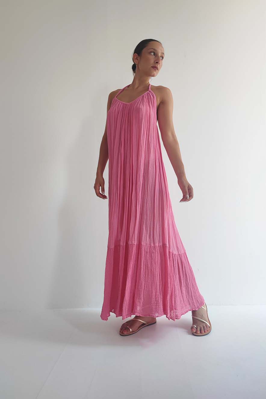 • D' Artemide Anais Maxi Dress with Tie at the Neck Pink