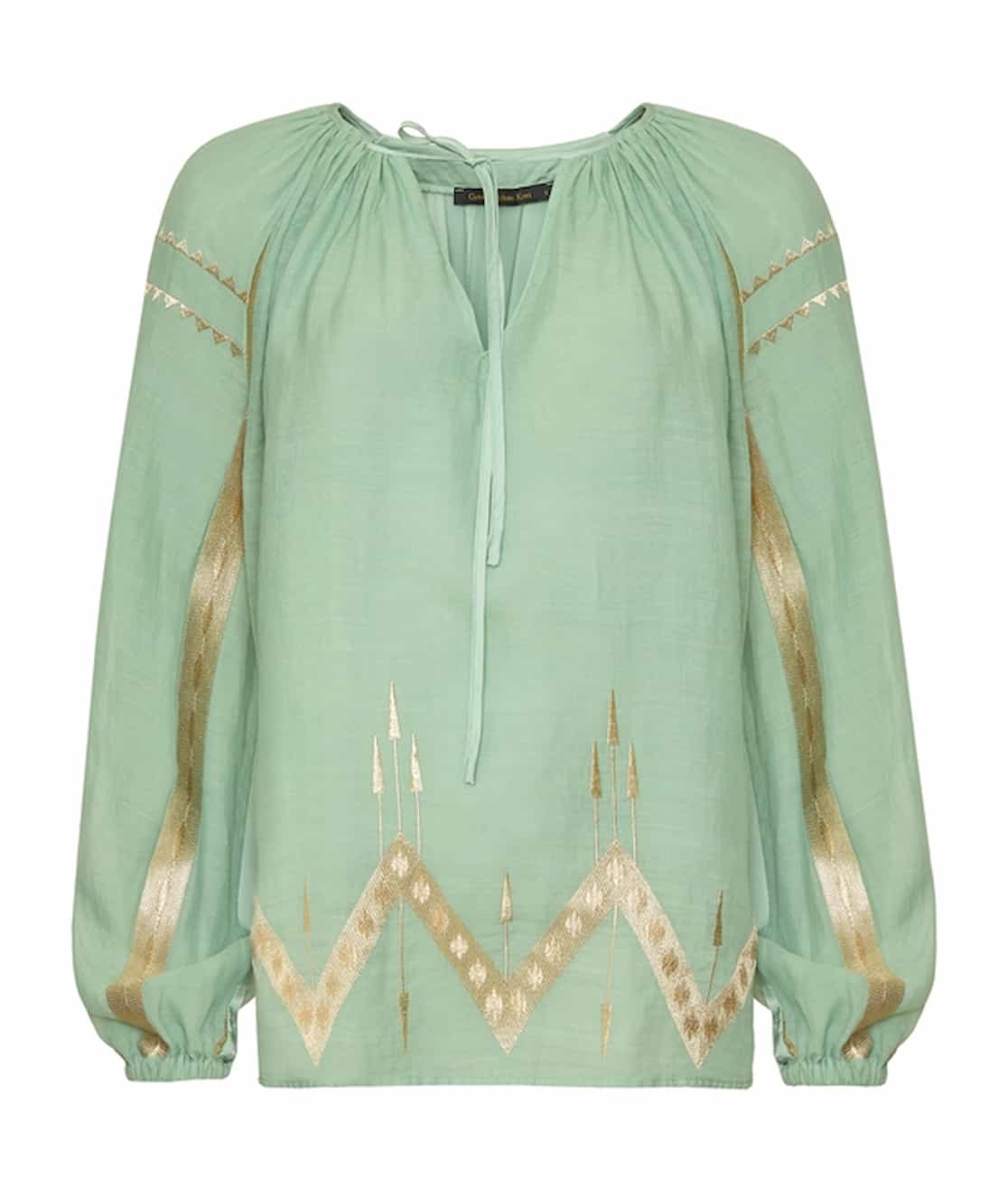 Greek Archaic Kori Blouse Roots Sea Green/Gold