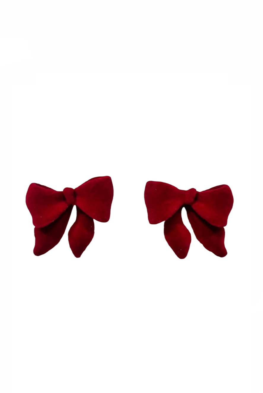 Ifigenia Loukou earring bows red, made of velvet.Hand made. Made in Greece.