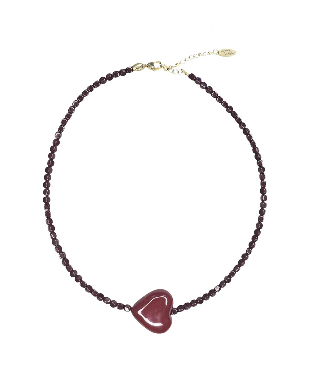 Ifigenia Loukou Hematite Necklace with Burgundy Heart