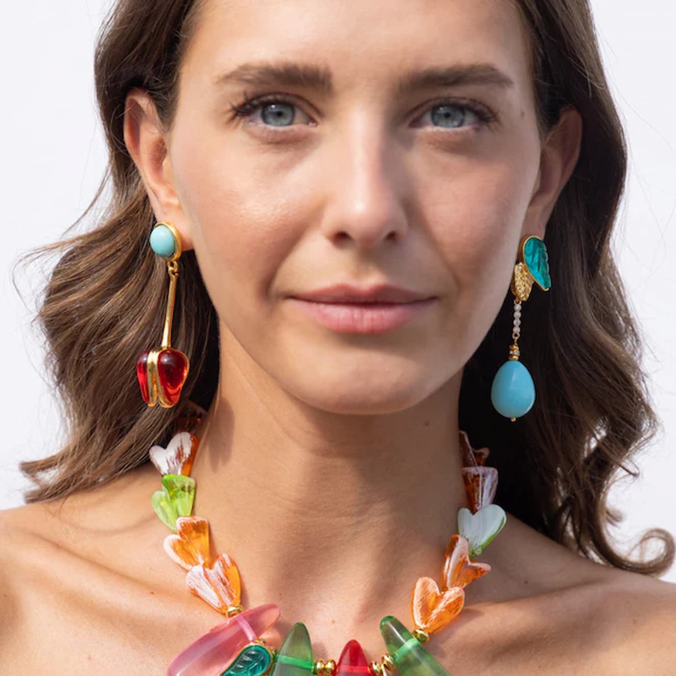 Kateria Psoma Nora earrings make heads turn, giving an absolute cool to your looks. This unmatched pair is like no other. Its turquoise and red hues will add vibrancy to anything you will wear. Your clothes will be the perfect backdrop to show these babies off.