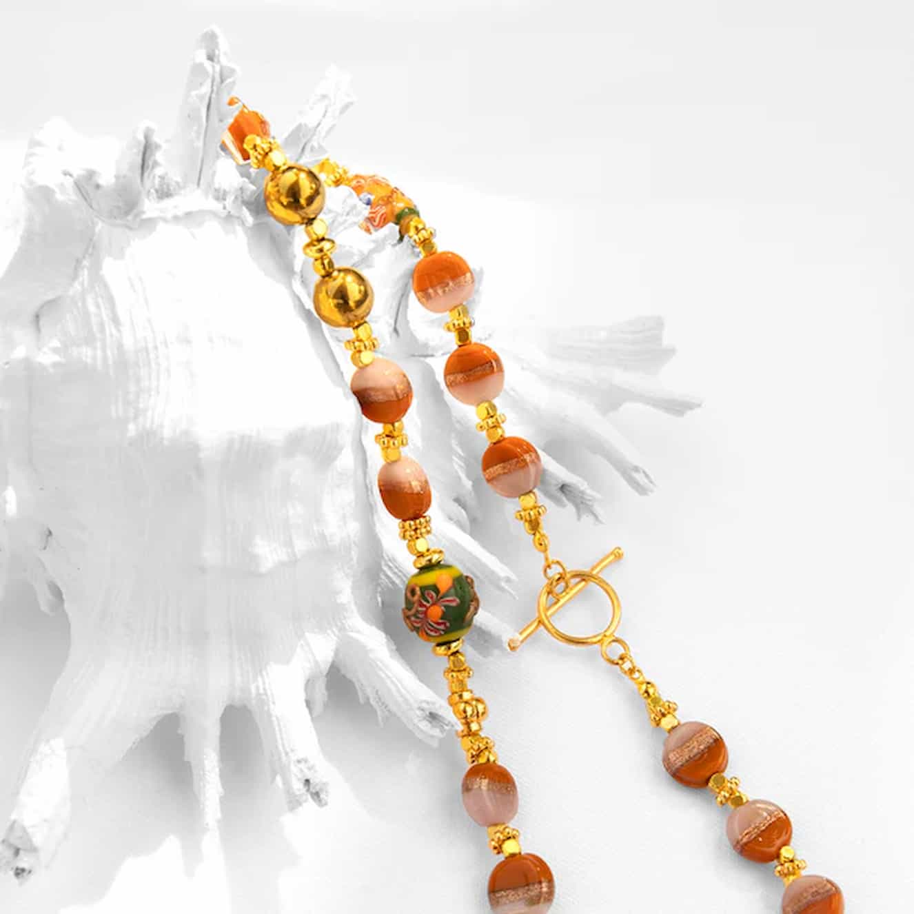 Katerina PsomaCoral and gold Murano glass beads will upgrade every day-to-night look. Long or short, you make the choice. Also note that beads may vary, since every necklace is handmade and unique. *The shape of the stone may vary. All jewelry are subject to minor changes. Our materials are handpicked and each piece of jewelry unique.