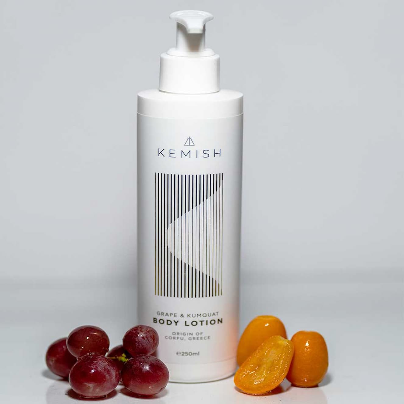 Kemish, herbal body cream with grape and kumquat. Moisturizing body lotion that leaves no greasiness, but only a feeling of freshness and renewal. Made in Corfu
