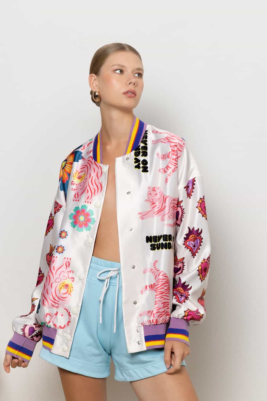 Never on Sunday by Nema Bomber Jacket Off-White