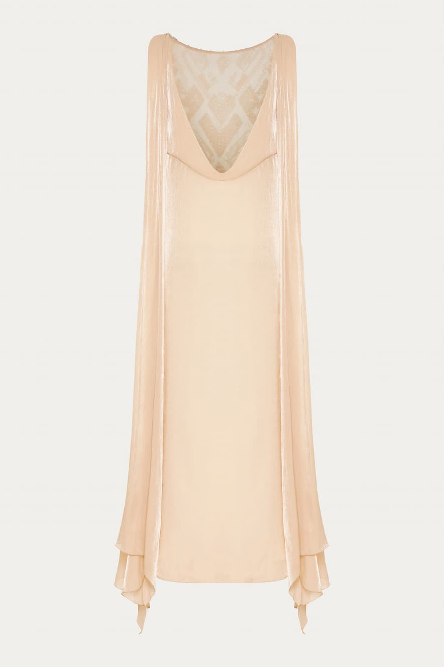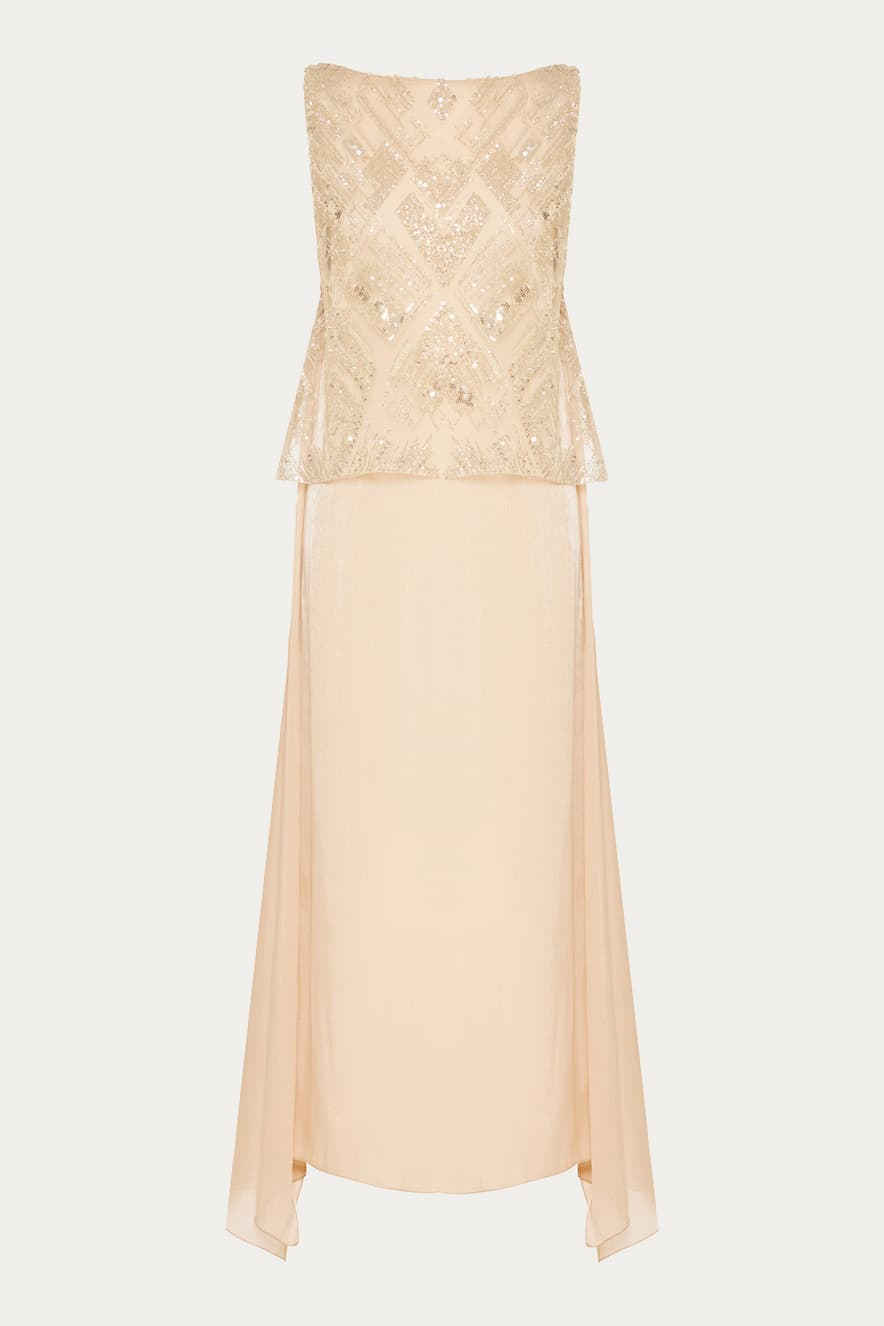 Nidodileda Chiffon Blanche Maxi Dress with Pearl Beige Silver