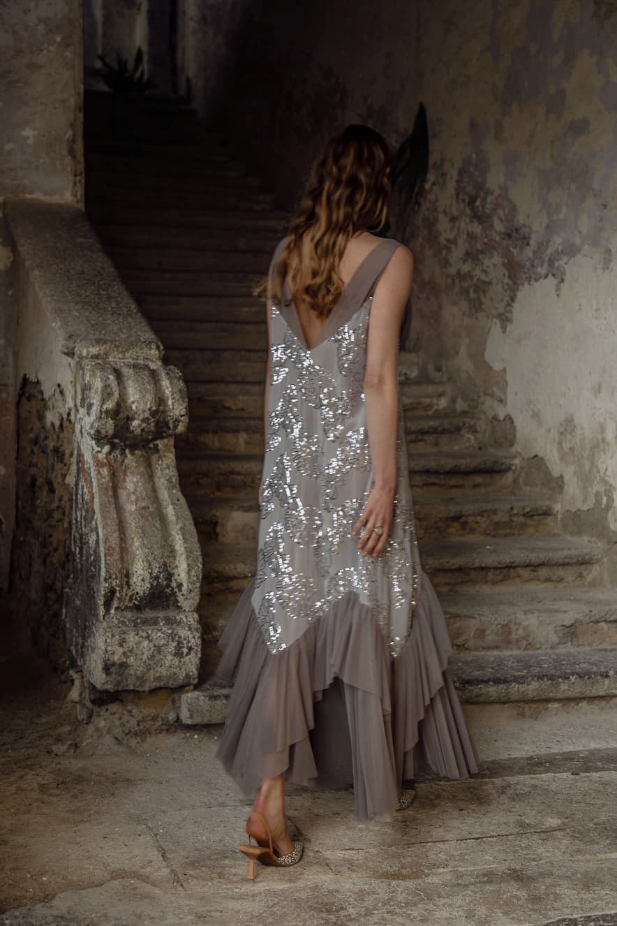Nidodileda Sequined Tulle Marvel Maxi Dress Gray Silver - Image 4