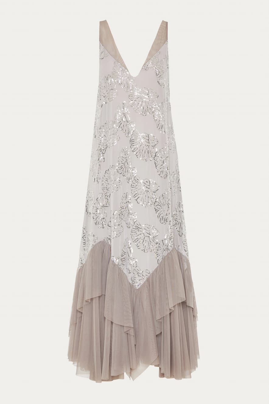 Nidodileda Sequined Tulle Marvel Maxi Dress Gray Silver
