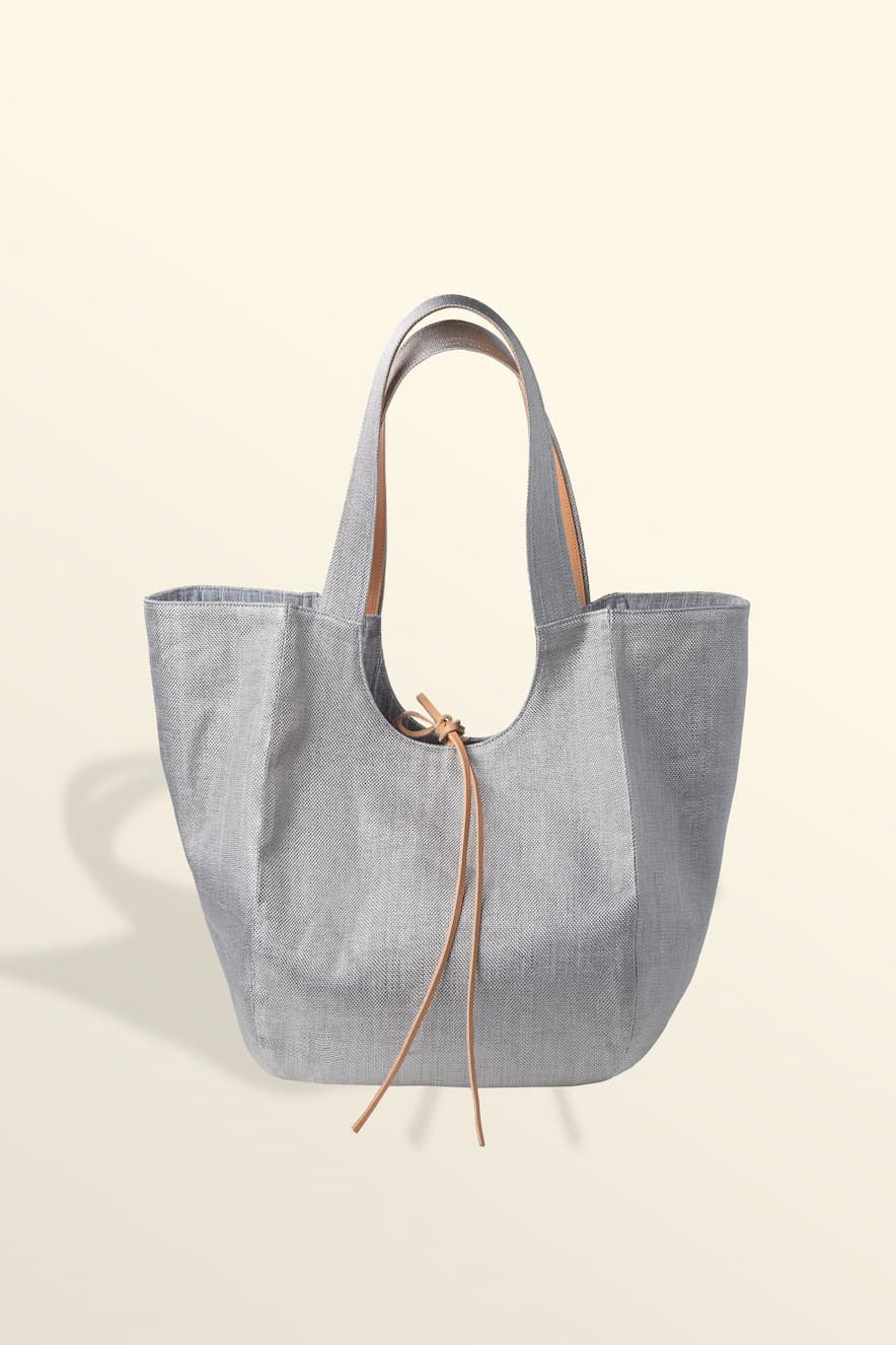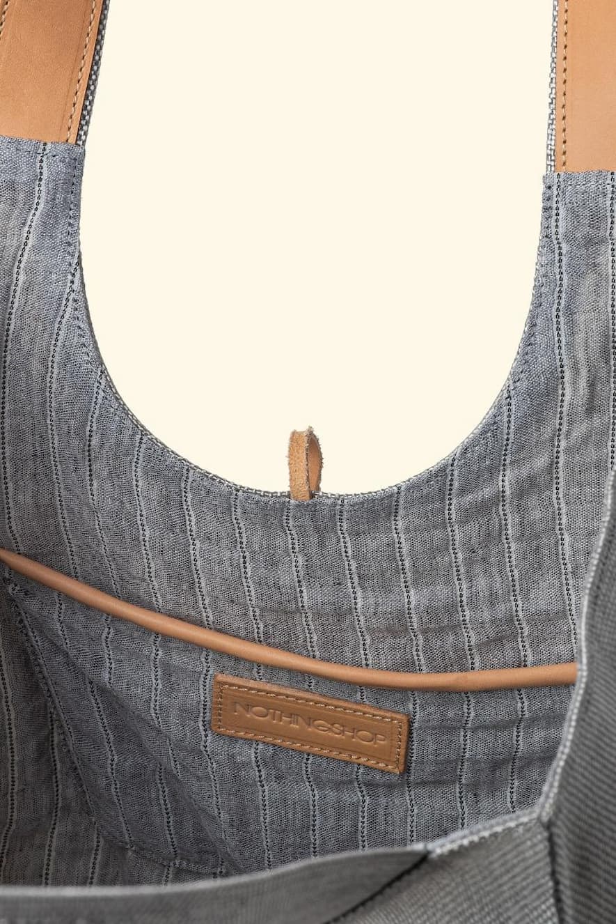 Nothing Shop Straw-viscose fabric, linen lining, leather-straw handle. Made in Greece.