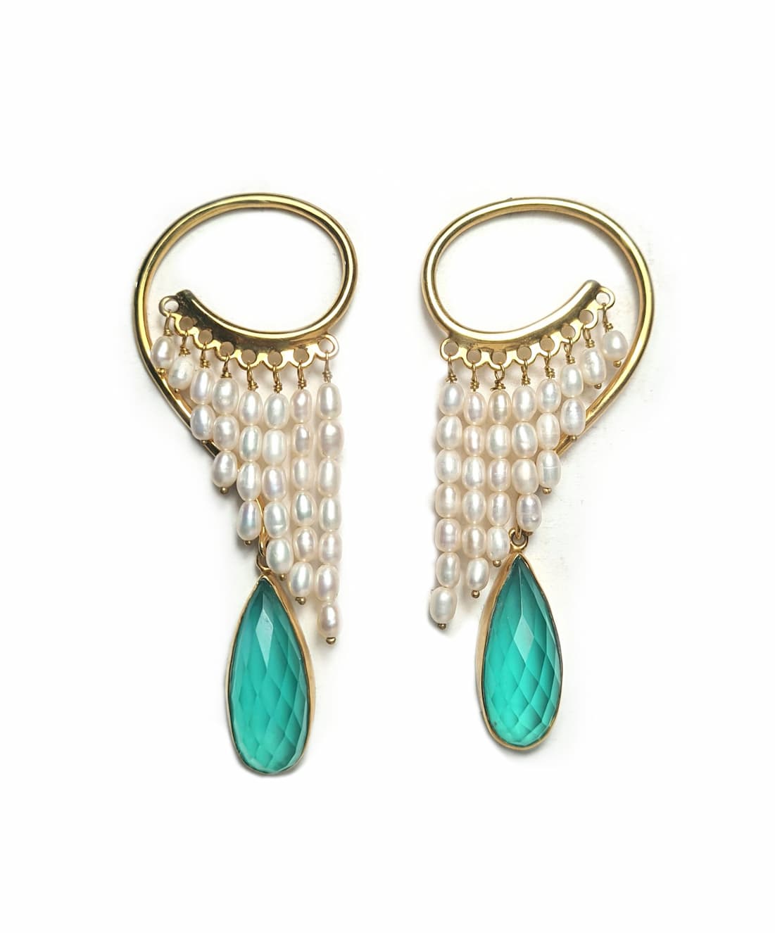 Tonia Makri Earrings Green agate,quartz,Pearls