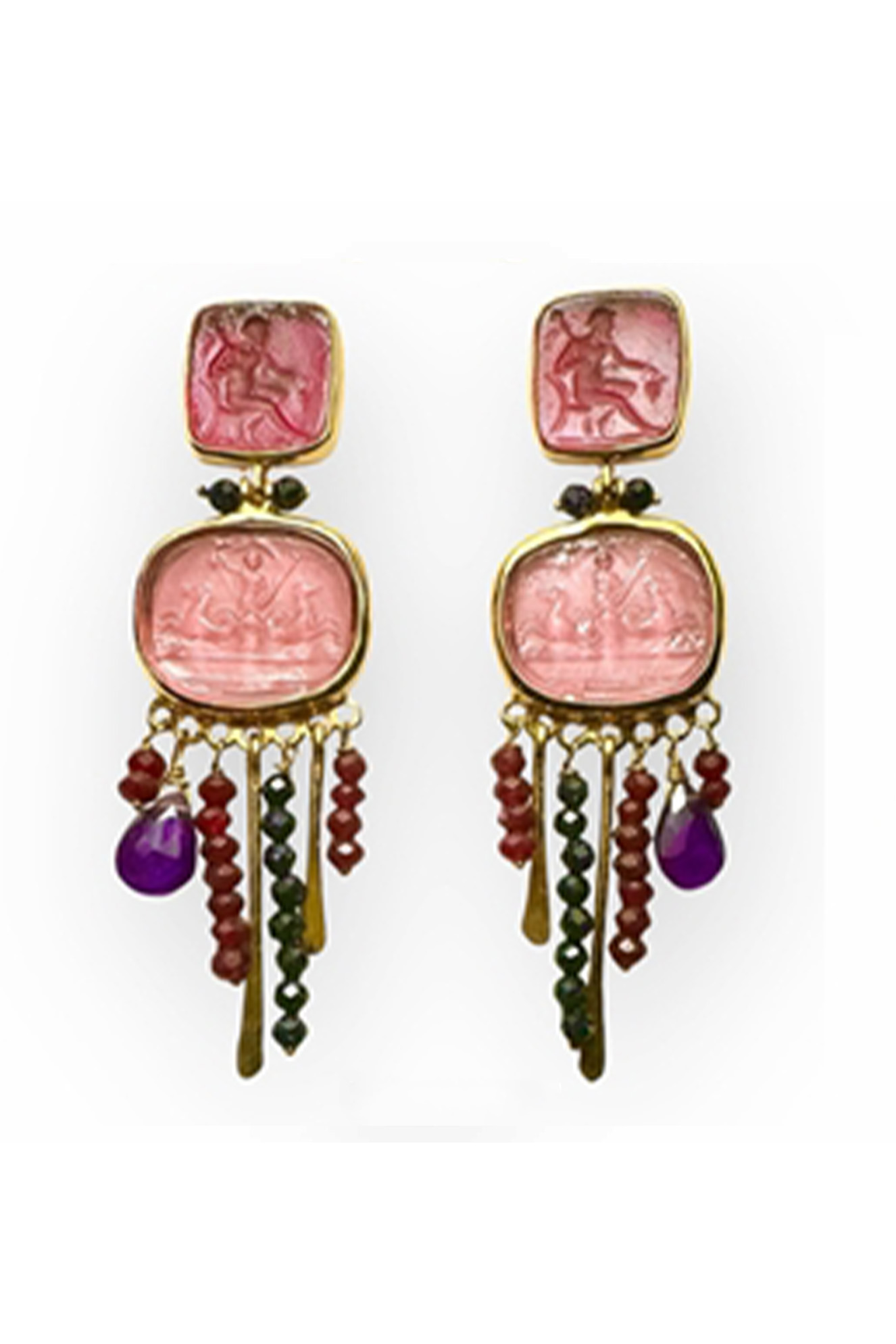 Tonia Makri earrings venetian glass corudini sand stone amethyst. Made in Greece