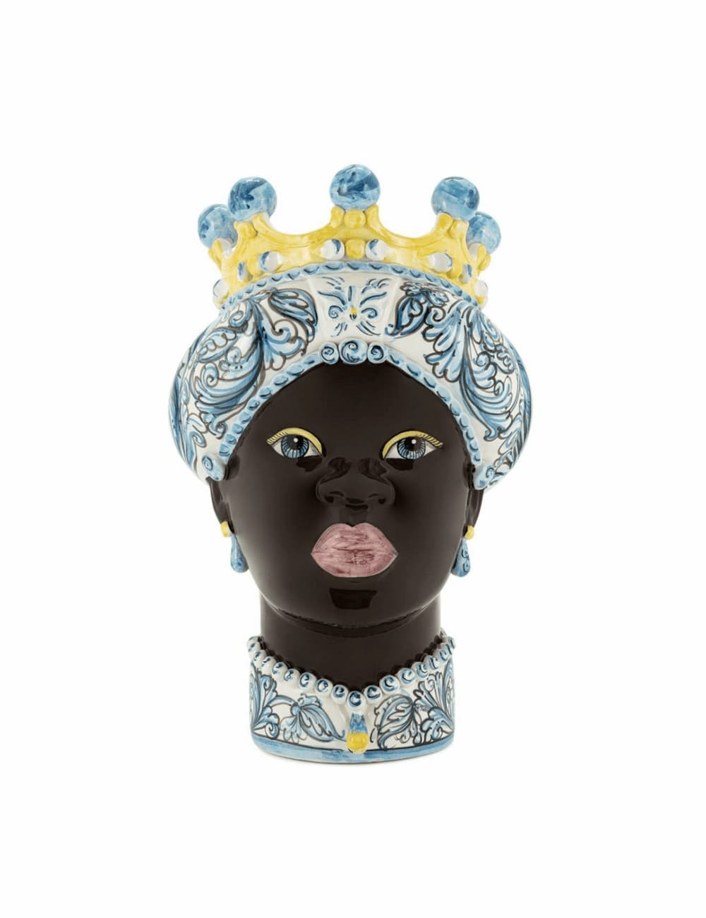 Sicilian traditional moor-head shaped ceramic vase, totally hand made and hand painted by the original artisanal producer from Caltagirone – Sicily.