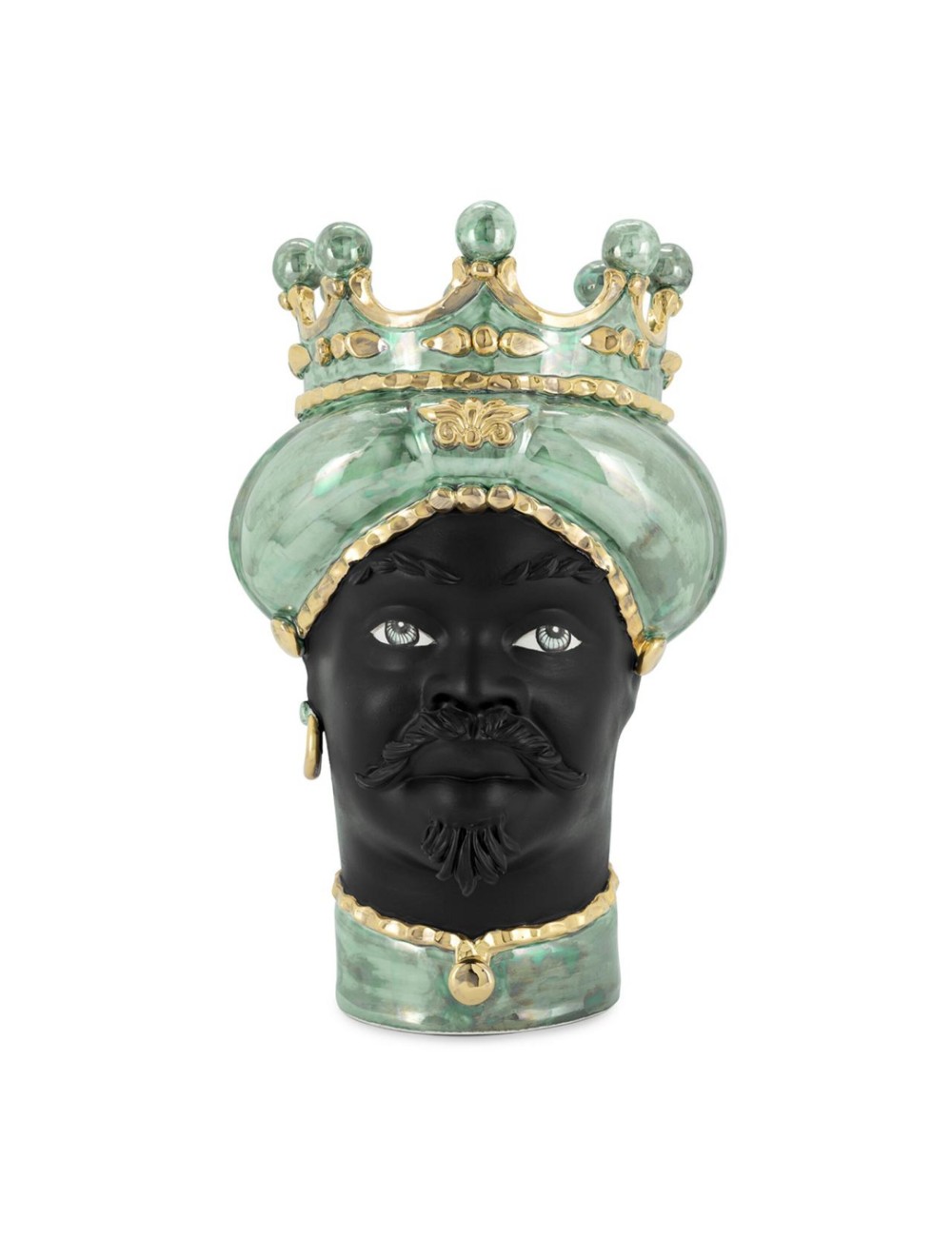 Abhika Sicilian traditional moor-head shaped ceramic vase, totally hand made and hand painted by the original artisanal producer from Caltagirone – Sicily.