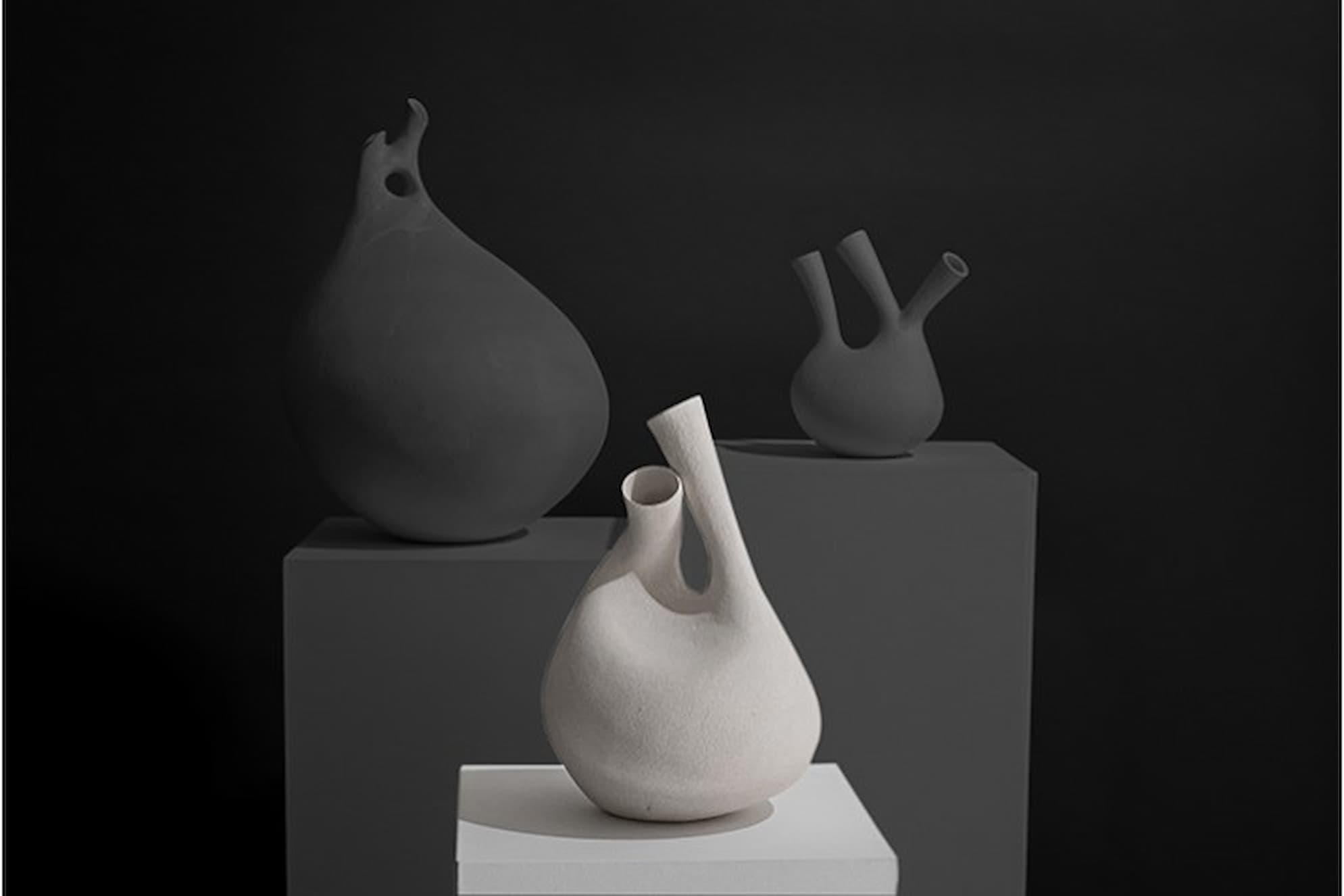 Meleniou One of a kind sculptural ceramic vessel made of stoneware, painted with white porcelain slip glazed and fired at 1220℃