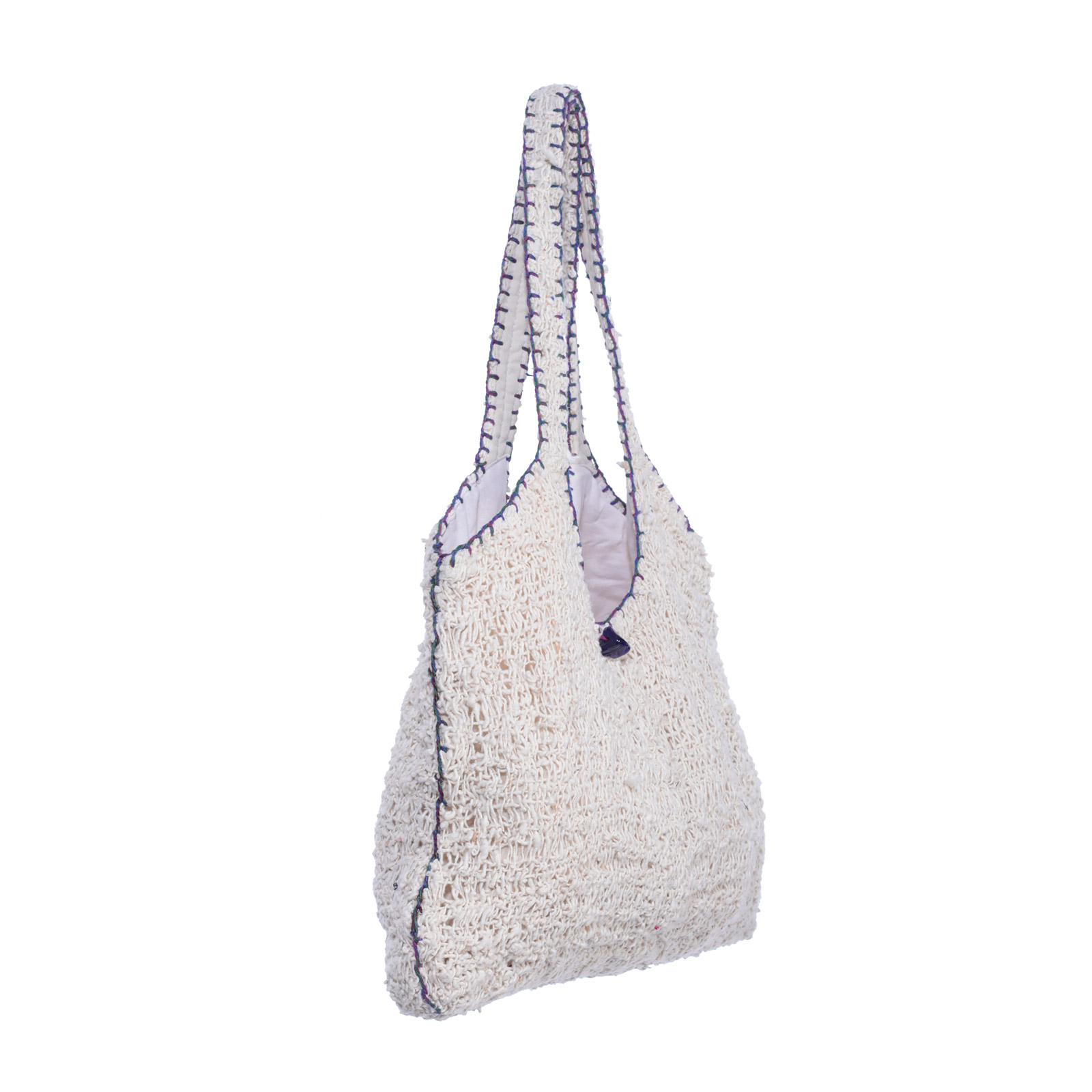 Woven bag with hand stiched details